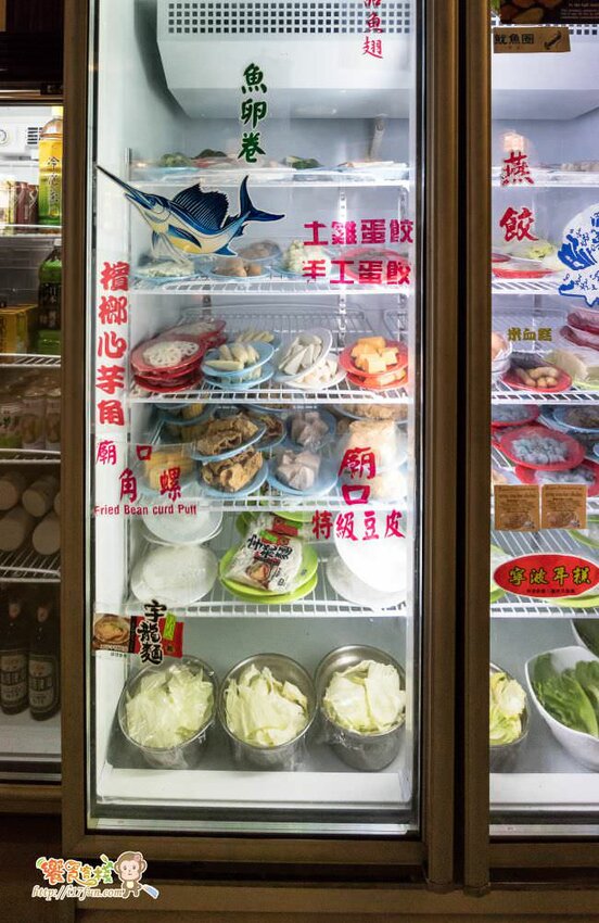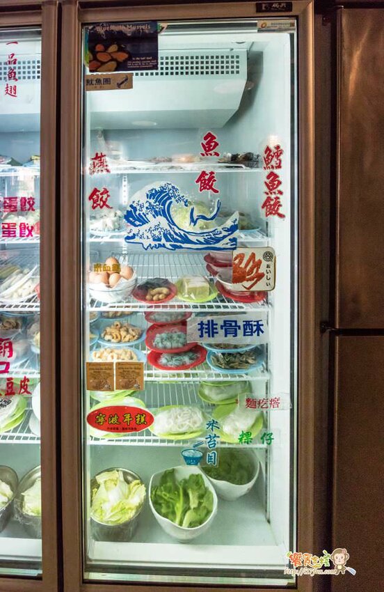 冰箱中,有各式的蔬菜、火鍋料,還有店內有多達九款的麵類可以選擇,每種食材都有用保鮮膜包好,確保食材的新鮮度,另外,比較特別是食藝石頭火鍋是不提供白飯的唷!