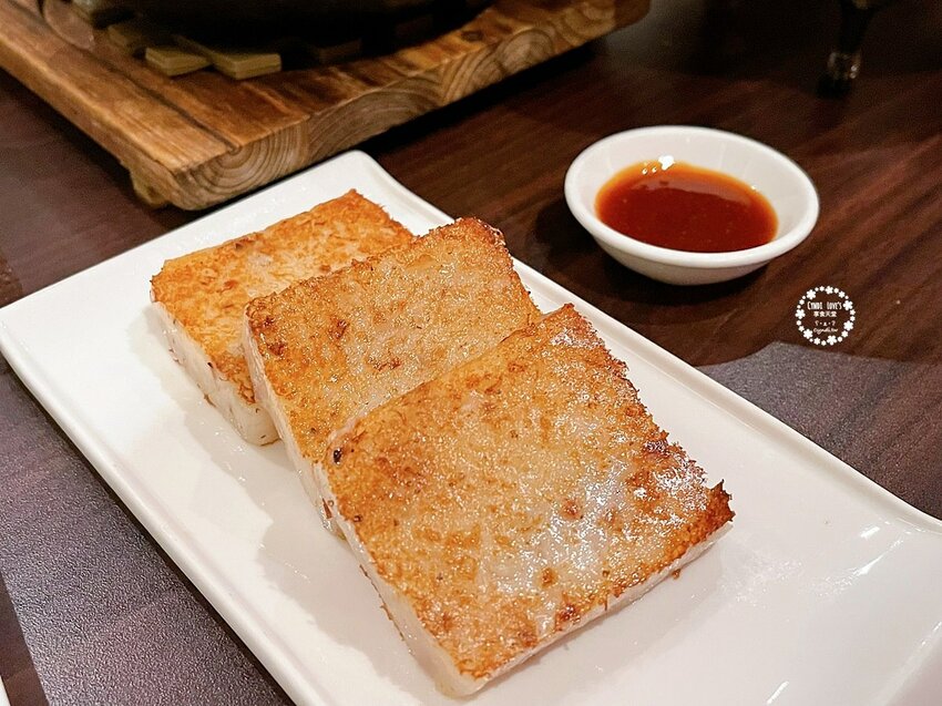 香煎蘿蔔糕,煎的表皮酥脆的蘿蔔糕,香氣十足,沾上附的醬更提味。