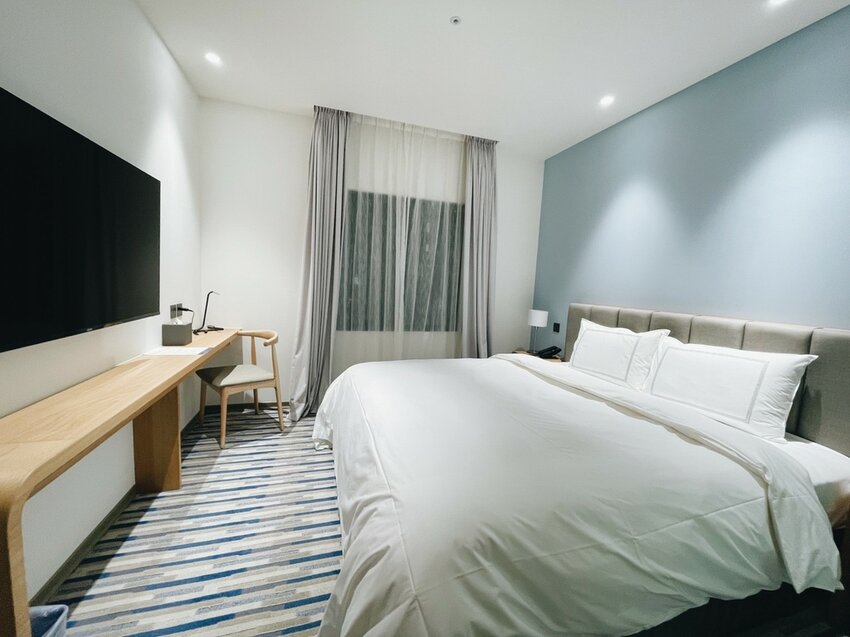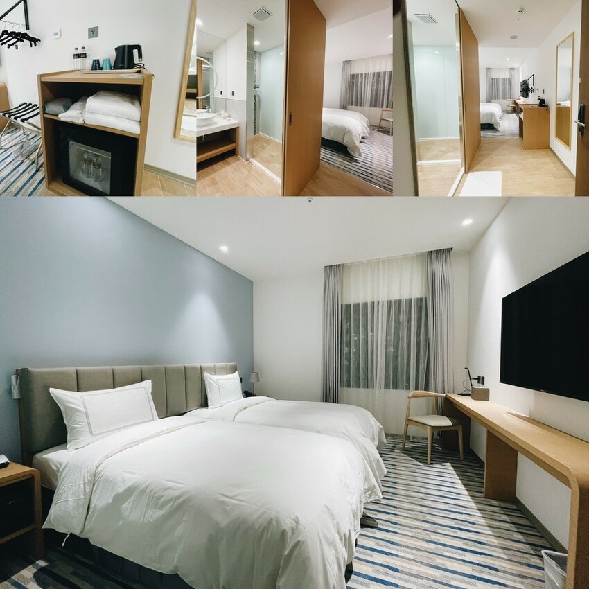 優雅溫暖的客房設計,整體以原木色為基底