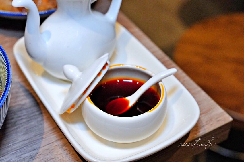 淋在飯上的特製武松醬是四川麻辣為基底,這武松醬的來頭不小,還是主廚特地到四川學回來的,加入了大紅袍、青花椒、各式頂級辛香料,還有剁碎的豬皮熬製,吃起來香麻帶勁,還會有點黏嘴唇的口感,膠質太豐富啦!武松醬的味道個人覺得是香味大過辣度,基本上桌就是小辣,不夠辣的還可以加店家自製的Super辣,真的是會辣到噴汗的那種,此辣請謹慎使用,另外還有中辣程度的辣油,敢吃辣的加上一點真的相當過癮!