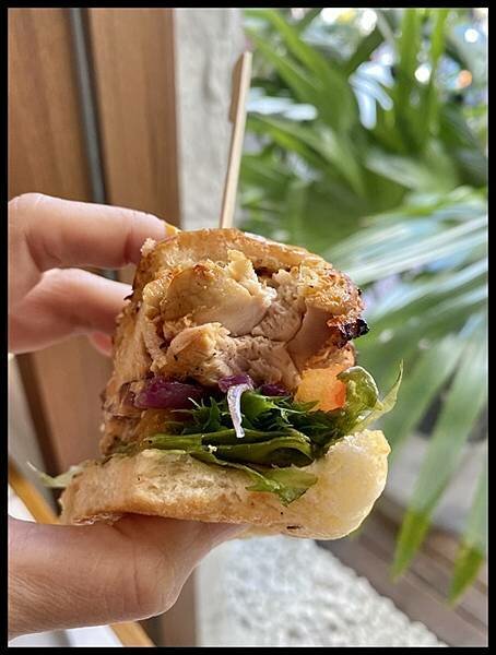 夾入了烤雞、生菜、蕃茄、醬汁等