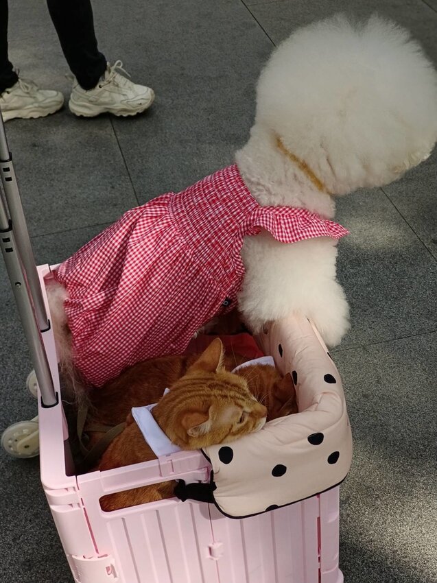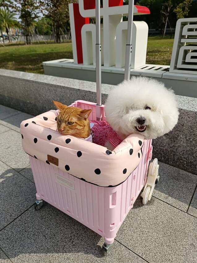 這次是四人兩貓一狗的屏東之旅~三隻在同一台推車上真的好萌唷~