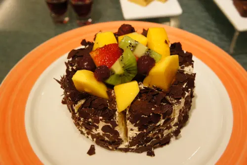 慕斯本體吃起來不甜,但裡面有一些巧克力碎粒,