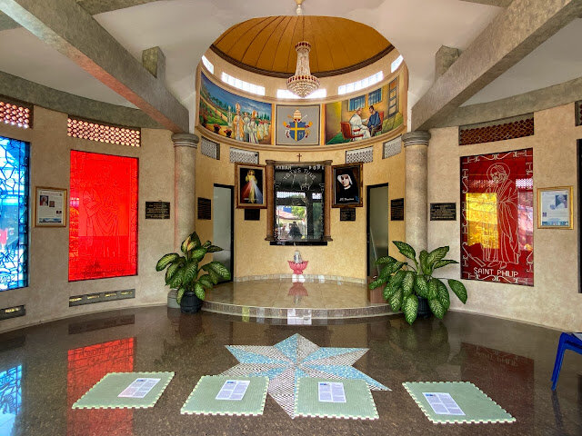 教堂內的禮拜堂佈滿關於天主教的裝飾,與教堂外形截然不同,