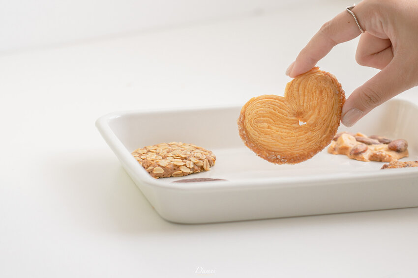 伯爵沙布列、蝴蝶千層酥、海味辣脆片、玄米烏龍脆片、法式鳳梨果蜜餅