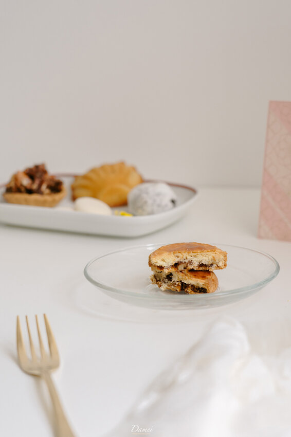 這顆法式鳳梨果蜜餅以熟悉的土鳳梨果餡搭配法式酥餅,香濃不甜膩,咀嚼之間有著核桃增添口感豐富度。