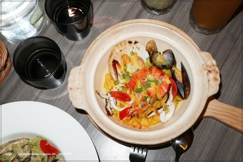 西西里鬱金香海鮮燉飯、板煎雞肉凱薩沙拉