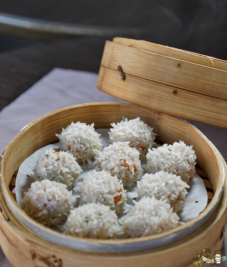 大顆飽滿干蒸珍珠丸,整個蝦子都快要爆出來了