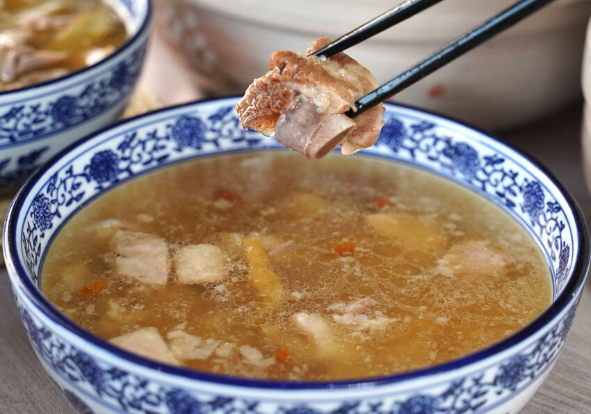 需要長達3小時的慢燉,釋放出天門冬香氣入湯頭