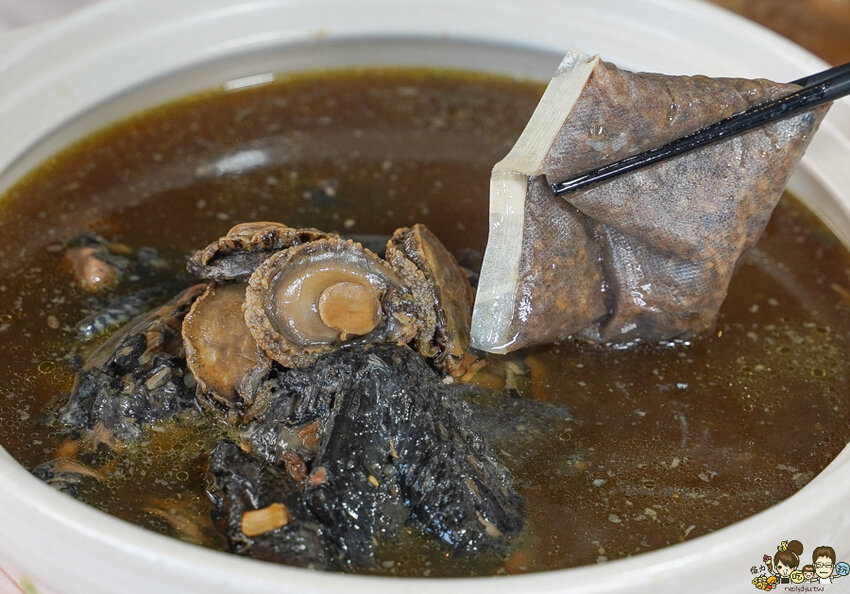 加入了鮑魚帶出海鮮甜味,慢慢燉煮帶出黑蒜的自然發酵香氣融入