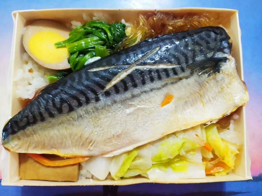 我點了這個挪威鯖魚飯包$90,大半隻鯖魚幾乎占滿整個便當,光視覺效果就滿分了