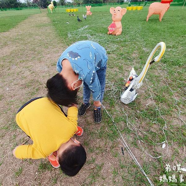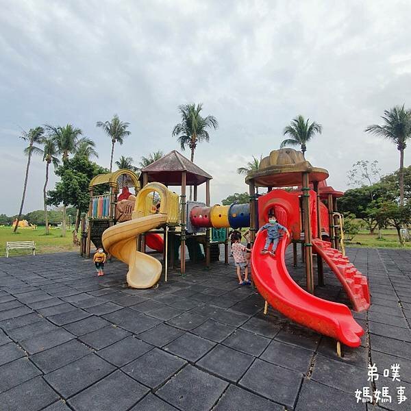 溜滑梯也是很多個,大概能想到的溜滑梯造型在這裡都有,孩子玩得比在阿里港公園還開心