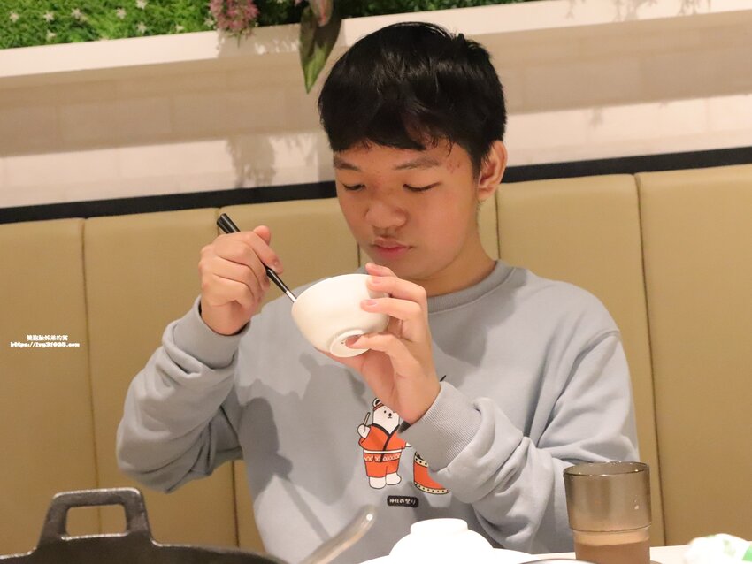 涮完的梅花豬肉搭配飯吃超搭,更是讓孩子一口飯一口肉的直扒飯吃。
