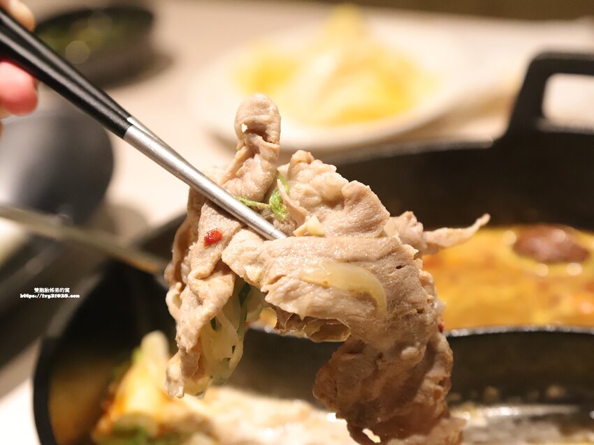 煮熟的生日蛋糕肉片很薄,讓你一咬就撕開,一口一片肉片剛剛好,再沾點海味石頭鍋的湯,讓整個肉片吃起來更鮮美好吃。