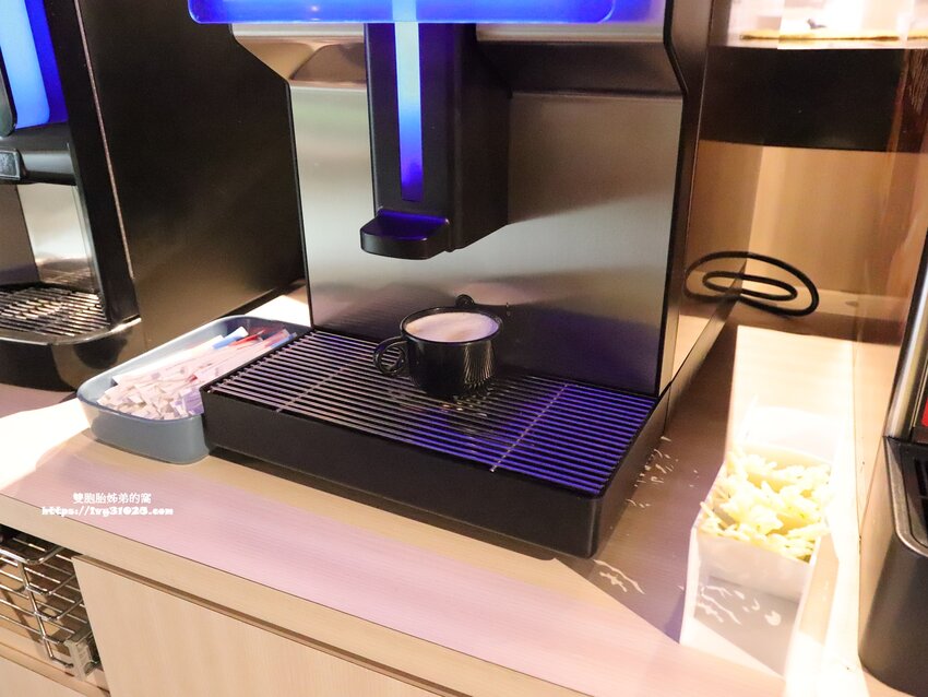好久沒有喝一杯熱騰騰的卡布其諾咖啡,就點了一杯來喝,咖啡機旁邊有隨手包砂糖可自取。