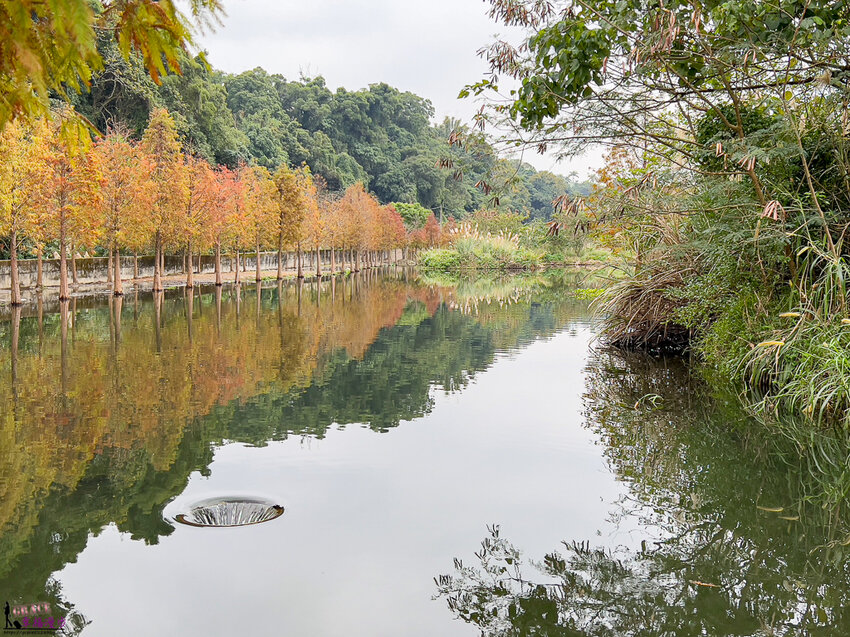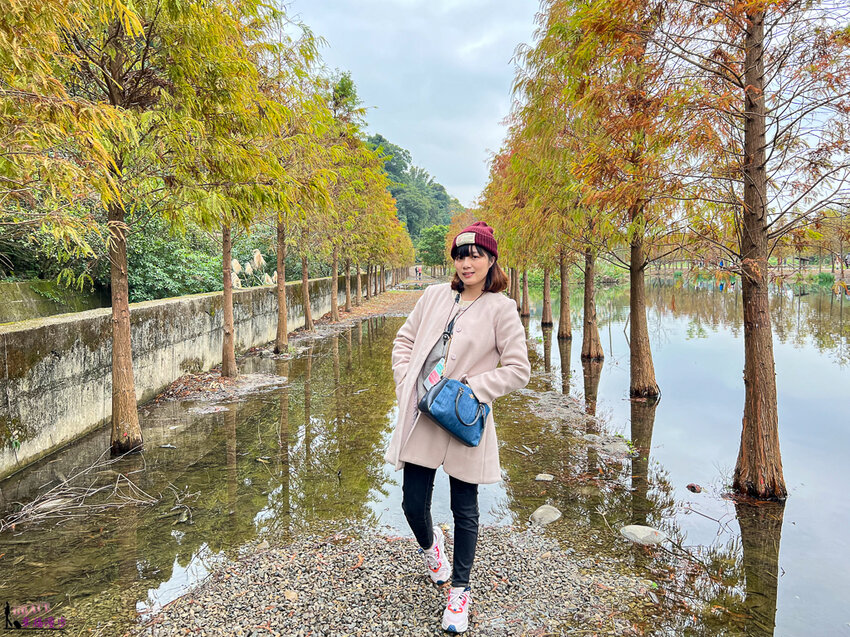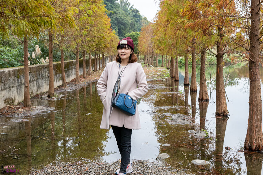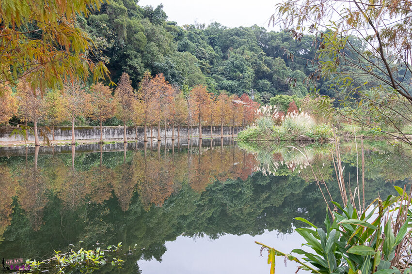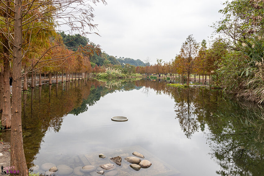平靜的水面有著落羽松的倒影,真的是很殺記憶卡的地方啊!
