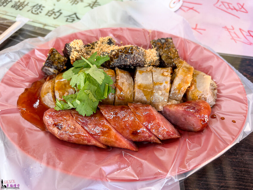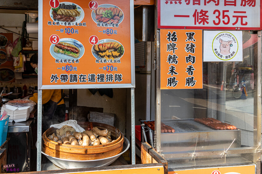 點了一號餐,糯米腸+香腸+米血糕價格100元,香腸肥瘦均襯,糯米腸米飯還蠻Q彈的。