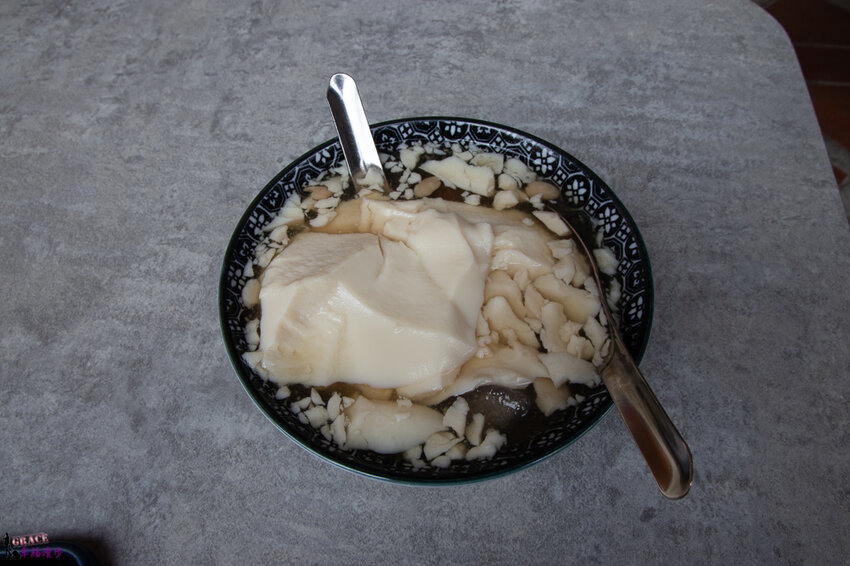 賴媽媽豆花店這家也是大溪有名的,點一碗豆花價格50元,配料很豐富,古早味的口感很好吃。