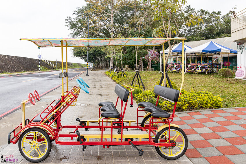 參觀完果園後我們前往月眉休閒農業區遊客服務中心,這裡離民宿開車一分鐘就可以抵達,我們要來此騎協力車生態遊覽 ,這個是民宿1+1的免費行程喔!