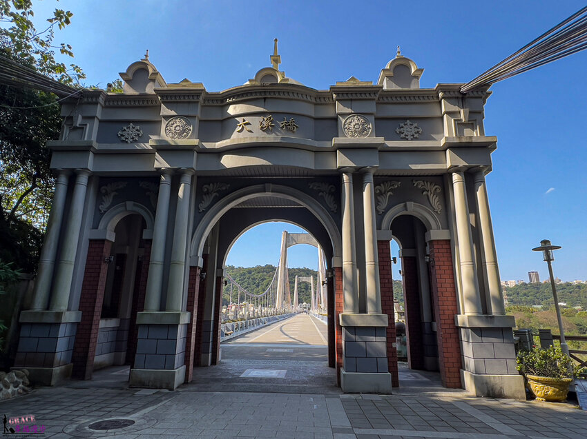 橋身是大溪老街巴洛克式的牌樓造型,橋上還有提供座位可讓遊客稍坐休息,這座橋也是遊客最喜歡的拍攝景點之一。