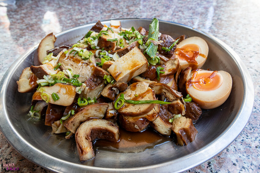 到大溪當然要品嚐一下豆乾了,在傳承五十年的老阿伯吃個現滷豆乾,各種豆製品在鍋子裡滷著,看起來就非常美味。