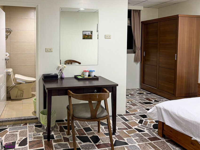 雙人房,房間是以原木傢俱為主,素雅的房間呈現質樸的風格。