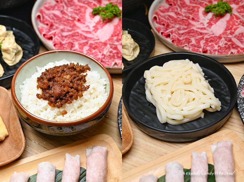 副餐糖糖選了天童本湯鍋物的人氣招牌家鄉肉燥飯,偏台南口味,整體吃起來偏甜了點,糖糖個人還是比較愛鹹口味的肉燥飯(笑),烏龍麵是糖糖最愛的讚岐烏龍麵,麵條超Q彈,吸附著濃郁湯汁,每一口都令人吮指回味