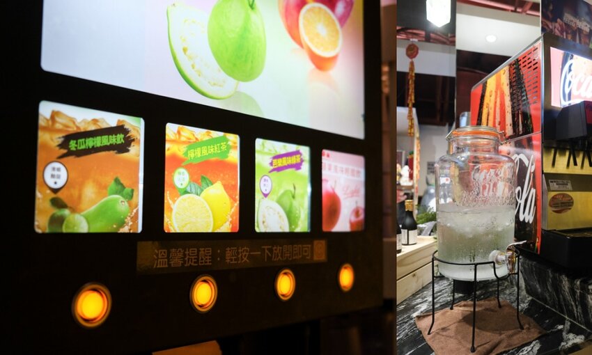 最後分享下吾皇大大的飲料區,軟性氣泡飲、冰鎮果汁、咖啡機,冷熱飲通有。如果不想喝飲料,也有冰開水可以喝。