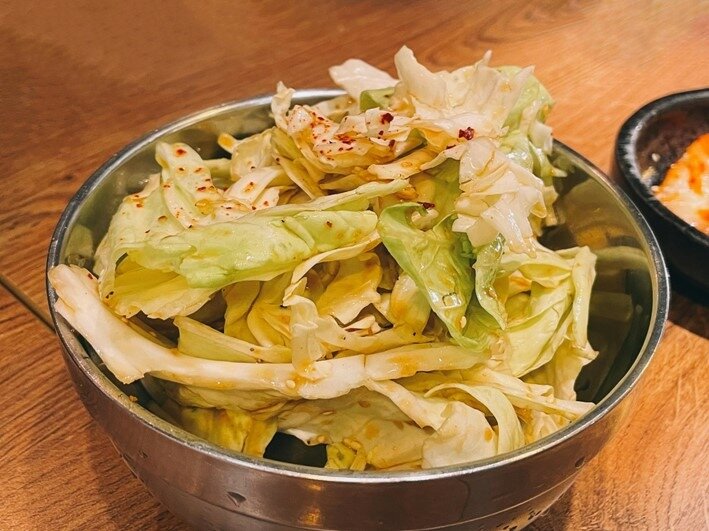 看似不起眼的高麗菜,上面到底是淋了甚麼醬汁?我們大家把一碗一碗的高麗菜當白飯再續!不要以為只有高麗菜這碗沙拉很無聊,極致的脆與鮮甜的菜葉,沒有親自體驗無法想像.