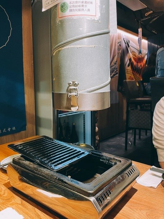 日本進口的烤爐和抽風管很夠力阿~其實我們八人用餐為了有更寬敞的進食空間,只用了一個爐子喔!抽風雖然給力,吃完後身上沒甚麼油煙味,但也不會覺得餐廳轟巄巄的很吵.