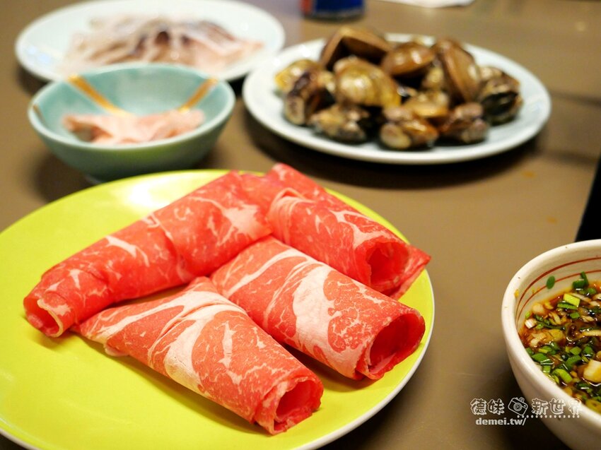 期間店員除了送來鍋底之外似乎還端上基本菜盆與肉盤,