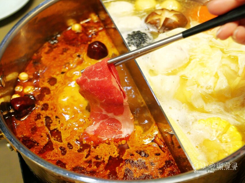 鍋底有汕頭(大骨+蔬果熬煮)與麻辣(牛油+26款中藥材)兩款,可鴛鴦也能選單鍋,