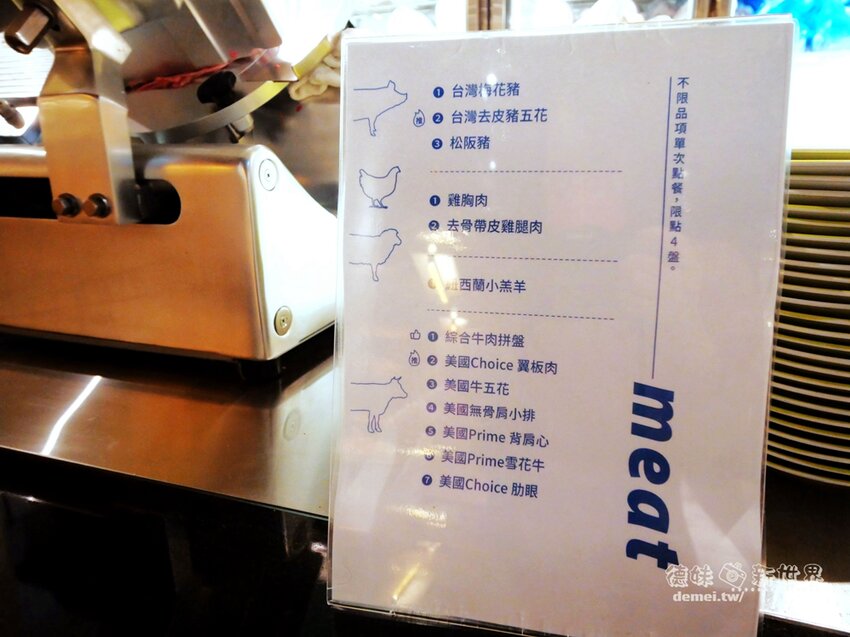 提供豬肉三款(梅花/豬五花/松阪豬),雞肉兩款(雞胸/雞腿),紐西蘭小羔羊,
