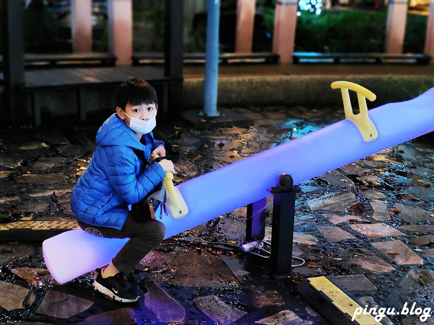 還有蹺蹺板可以讓小朋友玩耍,隨著高高低低燈光也會跟著變化唷~
