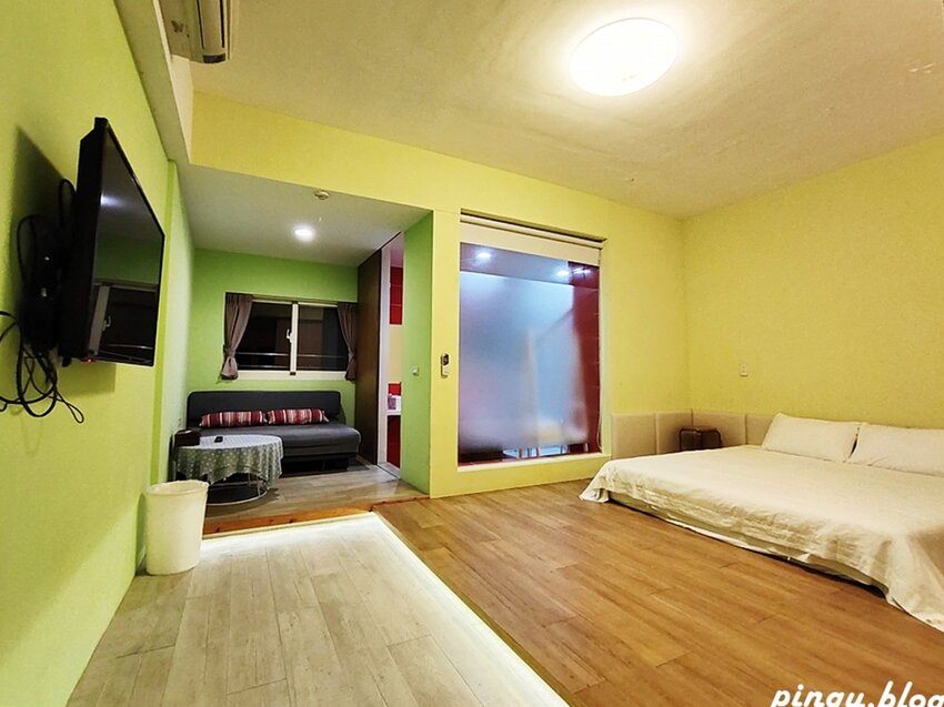 微陽花弄民宿的四人房超大,等於有兩個獨立空間,木質地板很有質感且也不擔心小朋友會滾下床,廁所旁還有沙發及桌子,用餐或是工作都很適合~