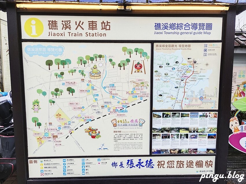 公車站牌旁有礁溪鄉的旅遊導覽,可以參考礁溪有甚麼好玩的景點唷!!