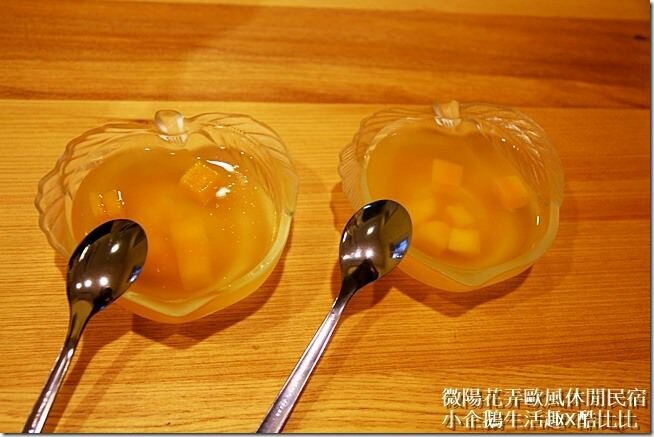 來住宿還能享用到老闆娘所自製的芒果果凍唷!!小企鵝吃完讚不絕口,還比出大拇指稱讚呢!!