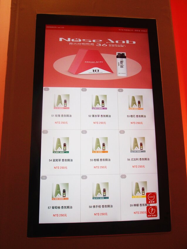 只要在銀幕上按一按,很快就能選購好一瓶喜歡的香水或香氛精油了