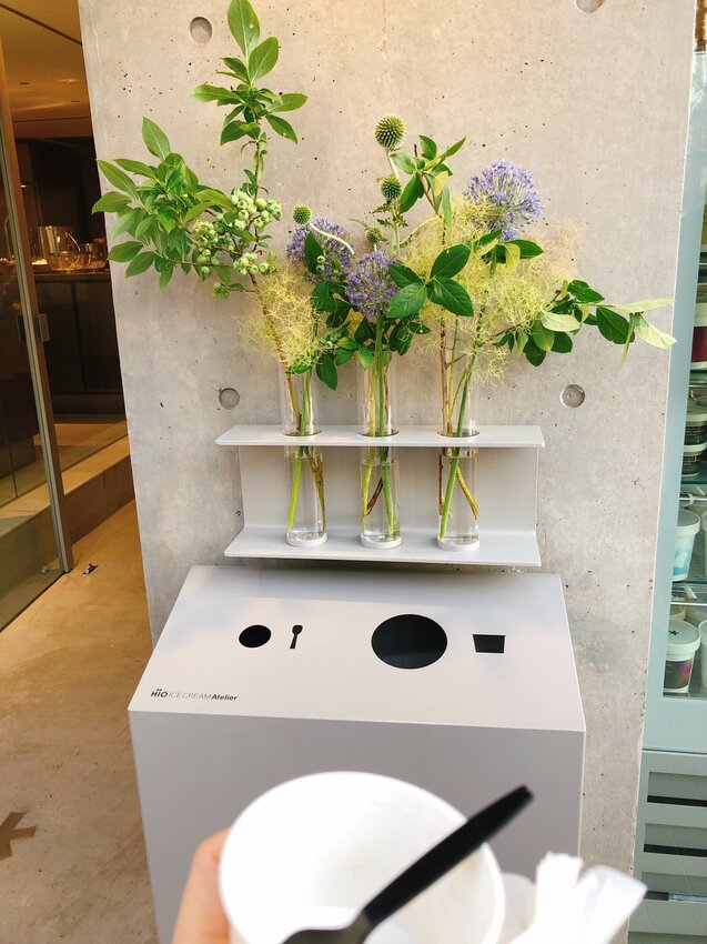 稍稍離開店舖林立的自由之丘,在車站軌道的另一頭2019年春天悄悄開了一間不太一樣的冰淇淋專賣店。路過很難不注意到HiO ICE CREAM Atelier宛如研究室般規模的落地窗冰淇淋工房,而旁邊不到1/3的小巧空間則是實體店面。