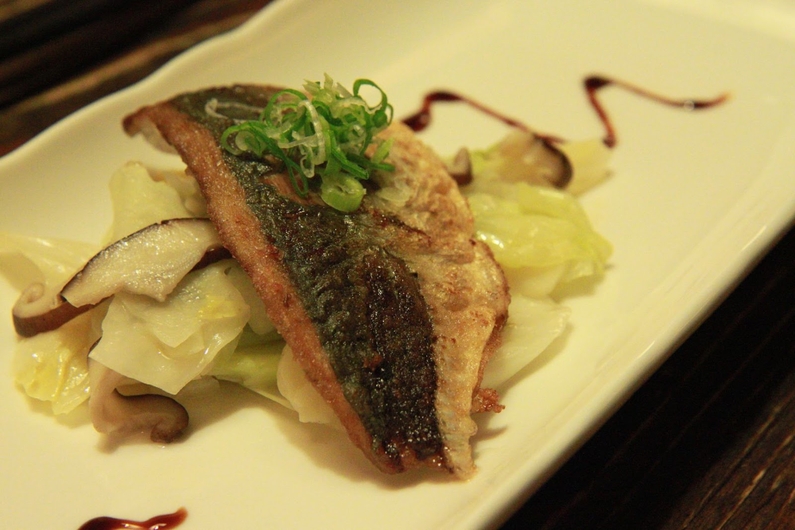 因此改點店家推薦的「香煎新鮮竹筴魚」,底層搭配清炒高麗菜後上桌~