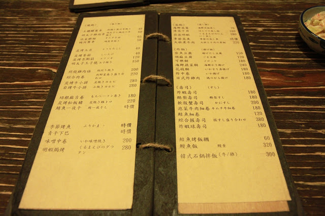 「御食堂」的串燒種類很多,如果你想每種都品嚐看看,可以請店家搭配一個綜合串燒拼盤。我們今天點的拼盤內容由下至上分別是:泡菜雞翅、烤香菇串、剝皮辣椒豬肉串、明太子雞肉串、串烤雞肉串。