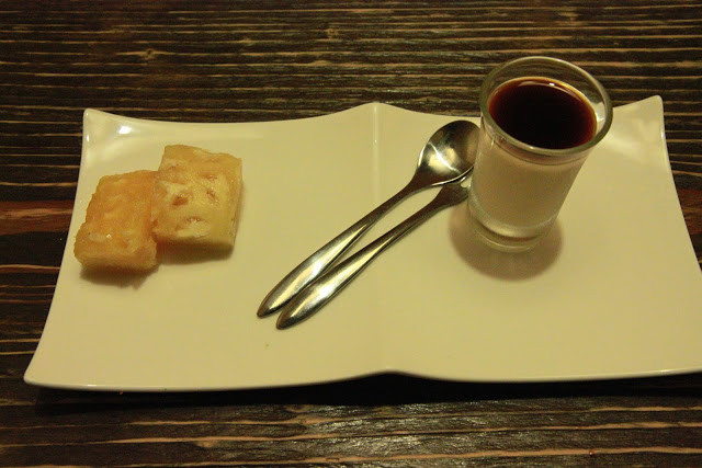 用餐結束,服務生會奉上甜點水果盤,甜點每日會更換,今天的甜點是焦糖布丁~