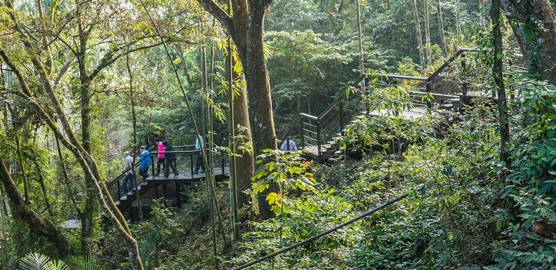 看起來很近,但實際足到吊橋還需約十分鐘左右,多數的步道是木梯算是好走,就是天雨時有一點小滑,千萬留意同行的老人和小孩。