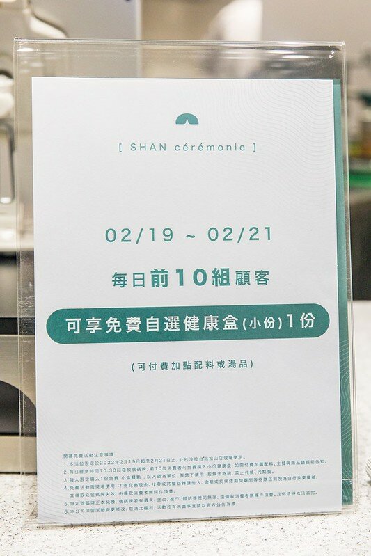 《杉SHAN》松山南京店於2月17日起試營運,2月19日正式營運,開幕前三日每日來店前10組顧客可享免費外帶1份,開幕日起來店消費即可獲得限量草木調口罩香氛貼及新鮮香草飲,數量有限,送完為止。加入Line好友會員並直接線上點餐,還可免費加選一項配料,實際供應依現場為主。