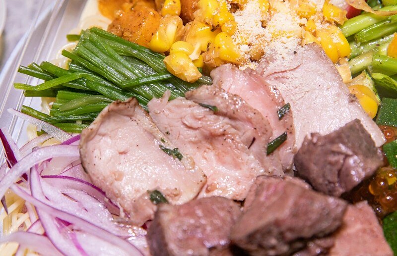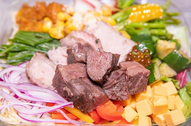 2:另外,還有多達十種的主食加購,從海鮮(鮭魚、蝦子、鮭魚卵)、肉類(牛、豬、雞),也提供素食,如新鮮酪梨、煎板豆腐等主食,當中還有兩種台北店才有的限定款(炙燒舒肥香草豬里肌、地中海香料煎雞腿)
