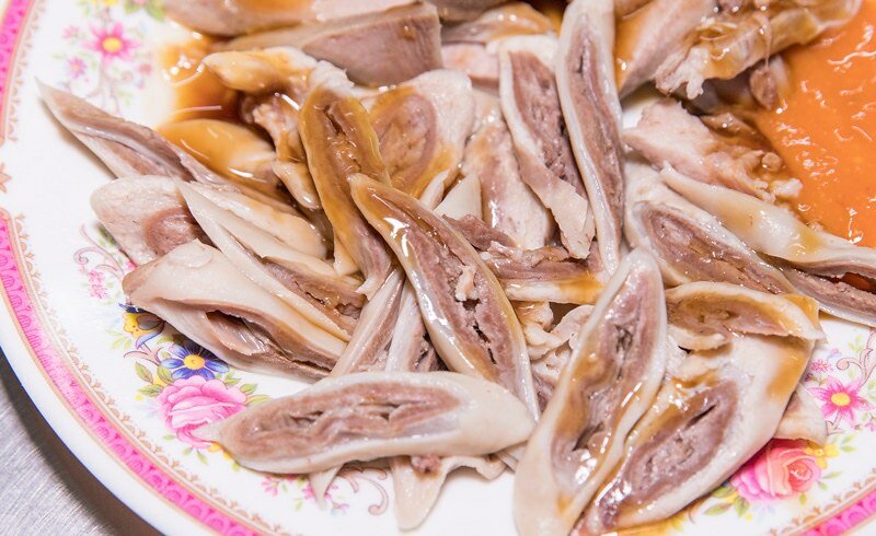 豬眼睛先別怕,這裡的豬眼睛正確應該是眼窩附近的肉,也連著頭骨肉和所謂天梯的豬上顎、嘴巴肉等等,這一盤看起來雜亂的豬眼睛有著不同的脆、不同的軟、不同的滋與味,是許多熟客口中郭家必點的豬雜,要是來得太晚還常常售罄吃不到呢。