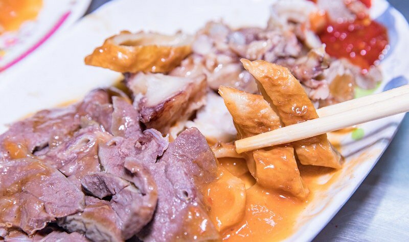 豬肺以前被戲稱是窮人的黑白切,在我小時候吃大腸圈時就愛這一味,尤其是在沒啥零用錢時,因為10元就能切上一大盤,如今因為費工(清洗)之故,越來越少見於麵攤、小吃店,但在基隆卻相對還是常見,是以回基隆就得嚐嚐。軟中暗藏微脆是許多愛此味老饕的理由,獨特的內臟味卻是更多人謝敬不敏的主因,在這也許你需要一匙甜辣醬或是辣椒醬相佐,行不行還真端視個人的味覺而定,總之有人點了,就嚐口試試吧。