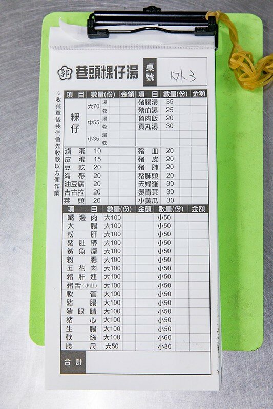 抄起自以為還很熟悉的點菜單,幫台北友人各劃了一碗乾粿仔和湯粿仔,勾完如今可謂基隆明星級的名物「吉古拉」後,思索著以前都吃那些豬雜、黑白切,卻想起以前住安一路100巷底時,對面七早八早間出煮鯊魚煙的臭味,於是順便畫了一筆。豬眼睛可以嗎?我頭也沒回的問了女性友人,管她敢不敢劃了再說,有吃過豬肚帶嗎?沒等她點頭也劃了一盤。