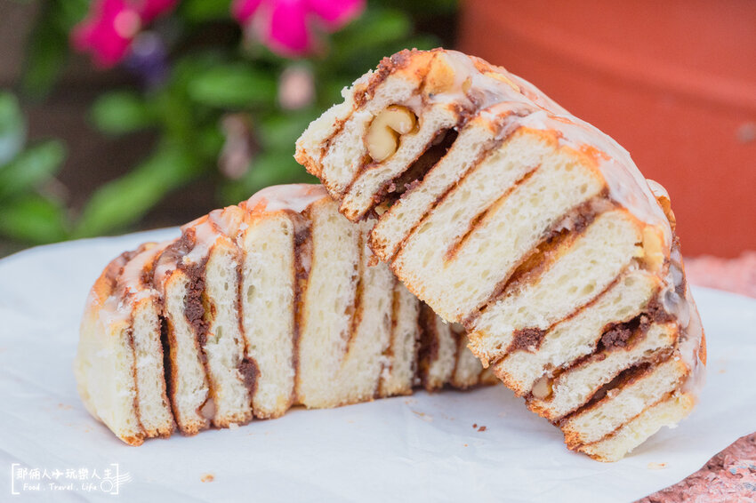 剖面除了看到肉桂餡外,還有不少的核桃乾,