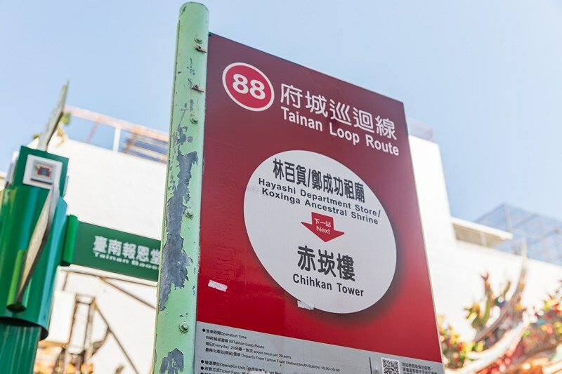 88府城巡迴線(官網):每日上午10時至20時,每20分鐘一班次(段次計費,乘車每次18元)。公車動態資訊:(06)299-8484#9 專人服務時間:07:00~20:00